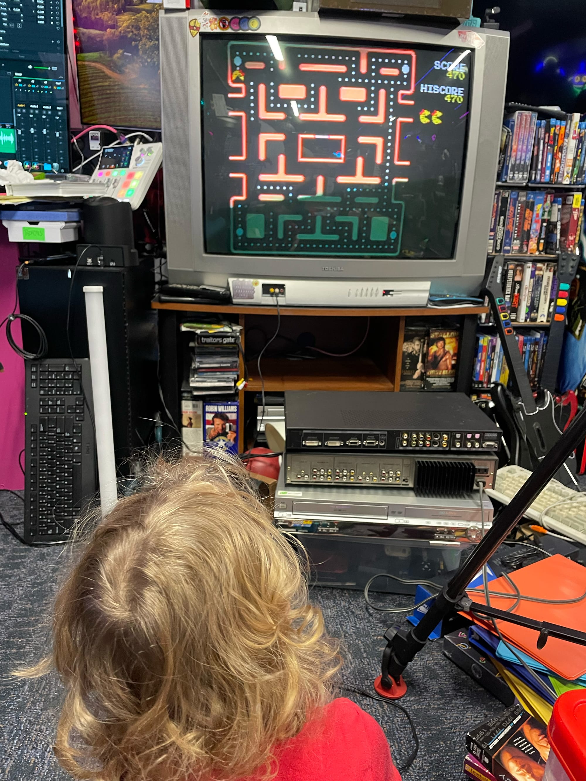 This is incongruent with the “monuments” I build to my “ideal” life with gaming. I build these setups because I imagine myself having the extra time to finish backlog games, dive into retro hidden gems I missed out on, and all of that – but I don’t have that time at the present. And I’m not willing to sacrifice the family moments, the co-op gaming experiences with my wife, all the little gaming firsts with my kiddo – any of that to make a solo gaming life happen. At no point would that be worth it. Sure, there are plenty of games I want to play solo and I’ll always need some “me time” – but I gotta be realistic about how much of my life (and therefore, my space) it takes up.