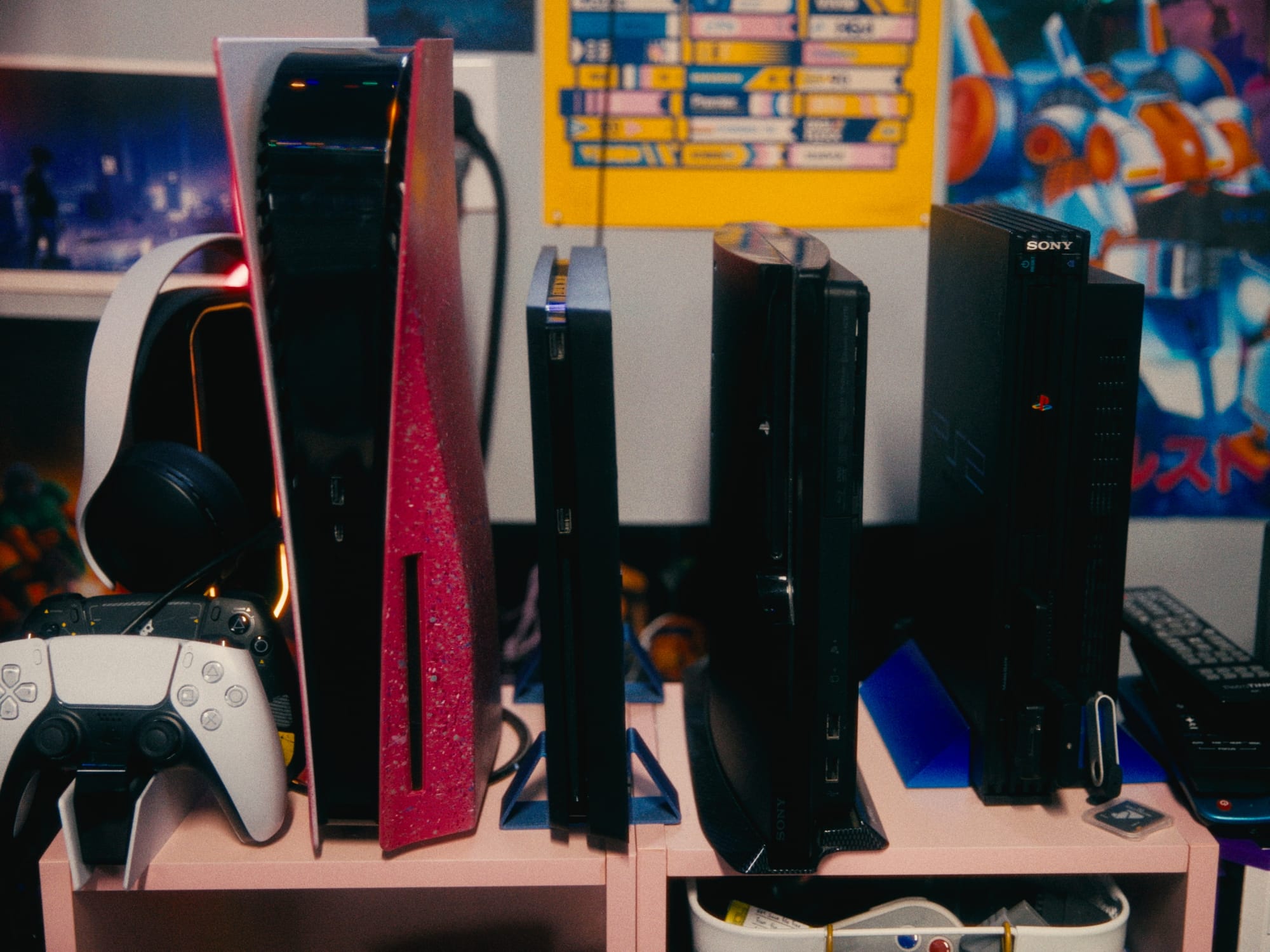 Space is precious and that console tower is eating up precious real estate. Especially since the only thing on it that I use regularly, my PlayStation 5, is moving. Most of my time spent on it in 2025 was playing Astro Bot with my kiddo. While it was neat to have a cool thing to do with him in my studio (especially helpful when I really need to get something done in here and want him occupied), we don’t need to be playing out here. Plus my wife would like to share in some of these games with us these days. So it’s going in the house.